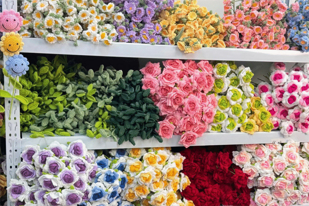 We have spent nearly two decades building floral gift lines that perform online. Our crochet program supports private label branding, low minimums for testing, consistent mass production for scale, and packaging designed for FBA. You will get color libraries, pattern options, and rapid sampling so you can move from idea to live listing quickly.